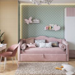 Цветовое решение: белое дерево/пудра розовая (эмаль)/нежно-розовый (велюр)