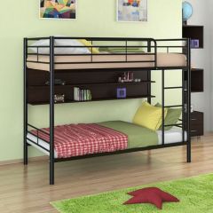 Материал каркаса: стальная труба. Все металлические элементы кровати покрыты износоустойчивой полимерной порошковой краской без запаха. Полка изготовлена из ЛДСП, цвета: Венге, Дуб молочный.