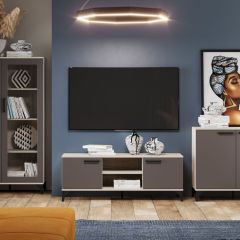 Гостиная "Марсель" (модульная) Софт Графит/Дуб Крафт Серый